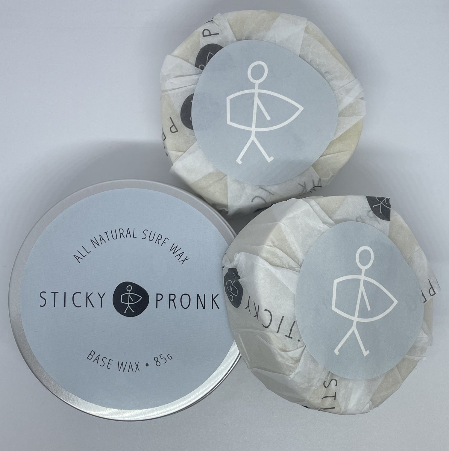 This refill pack includes 3 blocks of Sticky Pronk base wax. One packaged in a tin and two refill blocks.